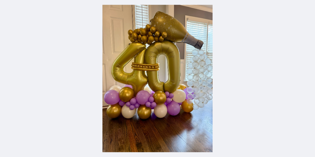 - Balloon Stacks: Perfect for milestone birthdays and anniversaries, kids birthday parties, realtor gifts for new homeowners